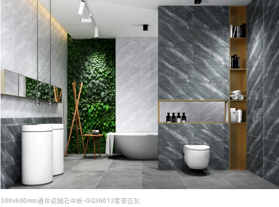 搭配暖灰色理石大板鋪貼地面