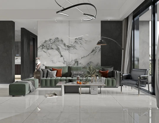 沒(méi)有復(fù)雜的紋理穿插,淡淡的白色線條點(diǎn)綴,明暗交替間紋理變化,既豐富了整體空間的肌理層次,亦能烘托出空間的高級(jí)氛圍。