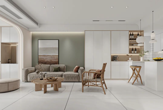 地面可選用喜翡穩步磚或可麗雅空氣凈化磚進行通鋪,真實石材的自然光澤,糅合不同類型的軟裝搭配,讓光線變得更加柔和。溫柔簡約的質感,保留了純粹的原生態肌理,簡單卻不失格調。