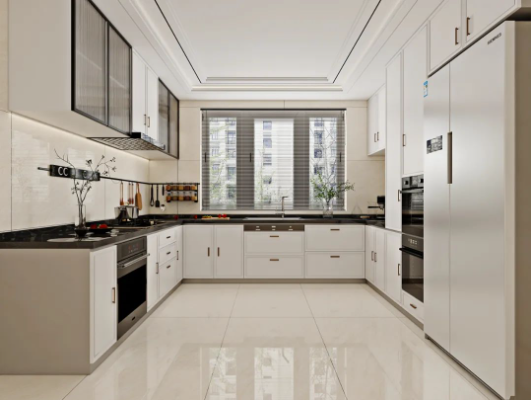 廚房以瑞金米黃進(jìn)行通鋪,如同秋日暖陽(yáng),悄然無(wú)聲潛入室內(nèi),雖不是特別熾熱,但卻溫暖有力量。