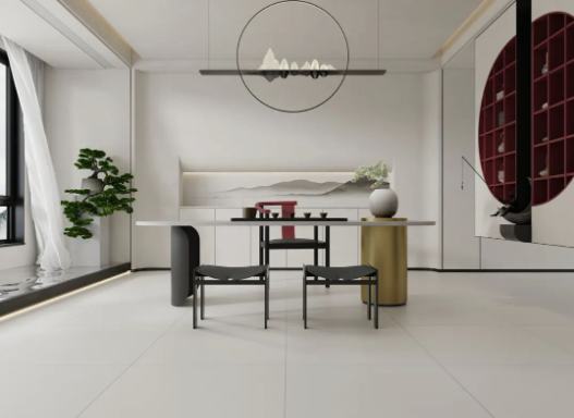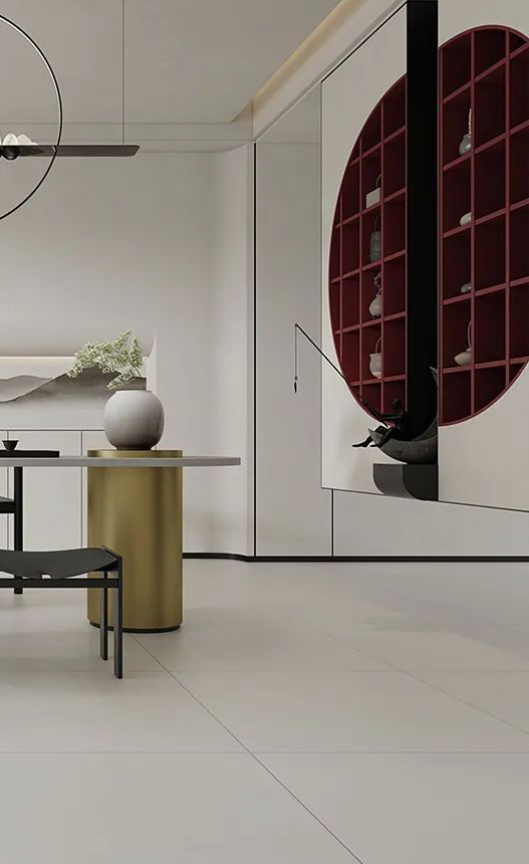門外是山河遠(yuǎn)闊,門內(nèi)是閑茶禪致。返璞歸真的材質(zhì)運(yùn)用配合著彩云歸干凈利落的沉穩(wěn)灰調(diào),將東方韻味的優(yōu)雅姿態(tài)完美呈現(xiàn)。