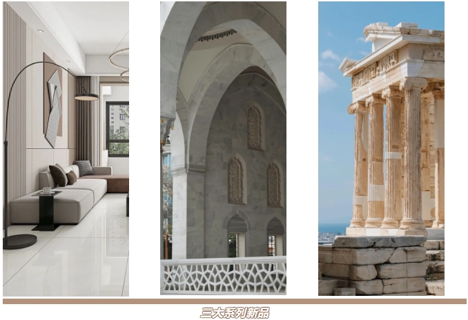 加勒比海石磚敏銳把握年輕消費群體的審美偏好,融合國際前沿設計理念,以突破性的創新思維打造三大系列新品:奢韻8135美學大板、簡奢復刻釉、超平金剛釉,以獨特光影、肌理演繹現代美學,重塑空間質感,不僅重新定義空間美學的表達方式,更為消費者呈現具有藝術格調的人居體驗。