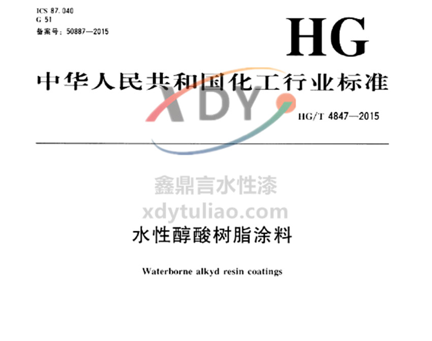 水性醇酸樹脂涂料化工行業(yè)標(biāo)準(zhǔn)HG/T4847-2015