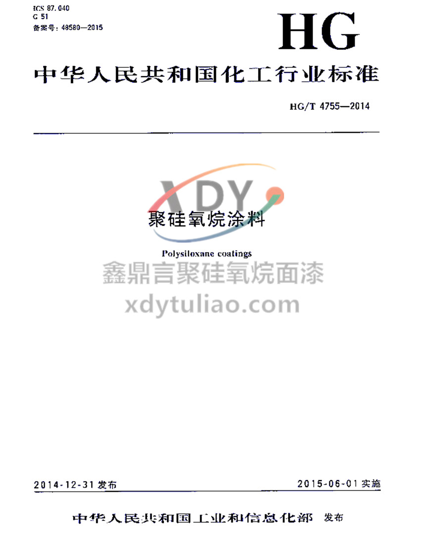 聚硅氧烷涂料化工行業(yè)標(biāo)準(zhǔn)HG/T 4755-2014