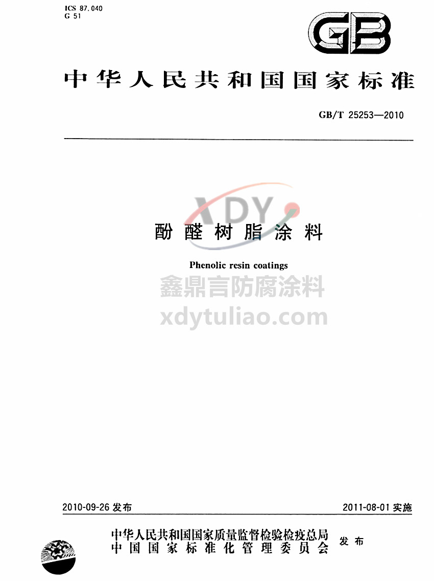 酚醛樹(shù)脂涂料國(guó)家標(biāo)準(zhǔn)GB/T 25253-2010