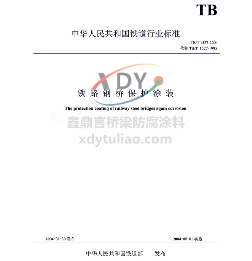 TB/T1527-2004鐵路鋼橋保護涂裝 中華人民共和國鐵道行業(yè)標準 TB/T 1527-2004代替TB/T 1527-1995 鐵路鋼橋保護涂裝The protection coatings of railway steel bridges aging corrosion 2004-01-30發(fā)布 2004-08-01實施 中華人民共和國鐵道部發(fā)布 本標準規(guī)定了鐵路鋼橋保護涂裝技術要求、試驗